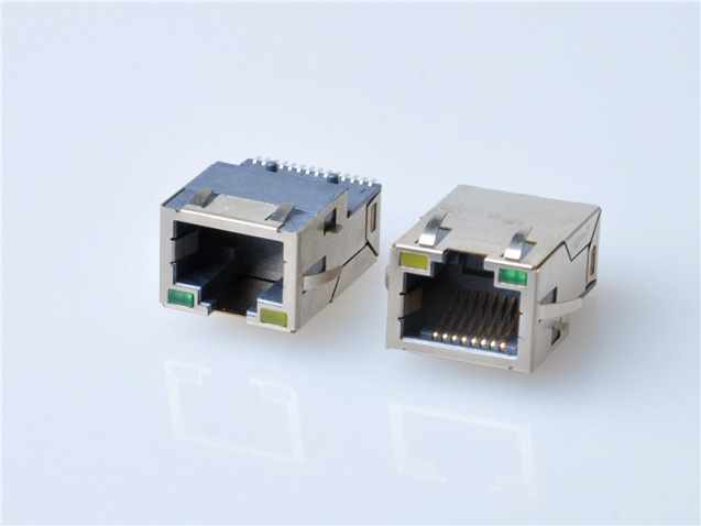 RJ45帶變壓器插座,千兆帶燈沉板插座