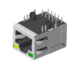 RJ45帶變壓器插座,1X1 反口21.3 帶燈帶彈 百兆 PoE